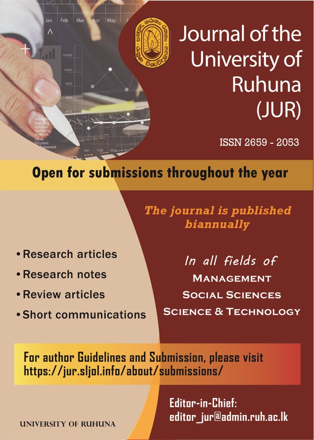 Journal of the University of Ruhuna Link for the Journal About the University University Web Site Vice Chancellor University Anthem Structure of UOR History Contacts Faculty of Science, University of Ruhuna, Matara, Sri Lanka. office@sci.ruh.ac.lk +94-041-2227001 Other Faculties Agriculture Fisheries and Marine Sciences Humanities & social Sciences Management & Finance Medicine Technology Allied Health Science Graduate Studies Quick Links Career Guidance Unit For Current Undergraduates Department of Physical Education